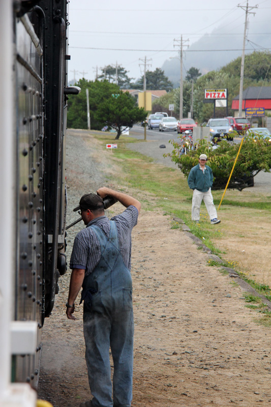 I had read about the Oregon Coast Scenic Railroad. It sounded like it might be fun and we were there the last day it ran regularly for the summer. They have an extensive equipment roster that includes numerous historic steam and diesel locomotives along with a growing fleet of passenger cars, and freight cars. All of the equipment and track is operated and maintained by the all volunteer crew of the Oregon Coast Scenic Railroad. Here's the car we started in.